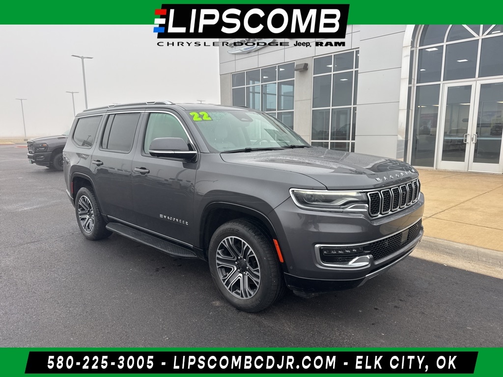 This pre-owned 2022 Jeep Wagoneer Series III 4WD with a One-Owner history and Clean Carfax is available now at Lipscomb CDJR in Elk City, conveniently located off I-40 at Exit 40. It has undergone a rigorous multi-point inspection to ensure quality and reliability. Lipscomb CDJR finances all credit types, including bad credit and first-time buyers. Get pre-approved today at www.LipscombCDJR.com and experience the luxury, capability, and innovation of the Jeep Wagoneer.